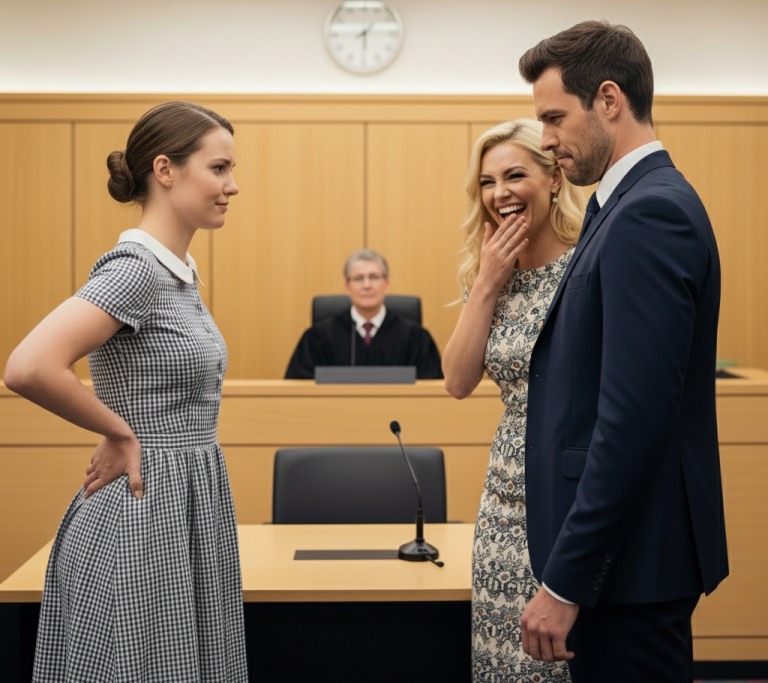 Im Gerichtsgebäude roch es schwach nach Bleiche und zerplatzten Träumen. Ich stand dort in einem verblichenen Secondhand-Kleid und umklammerte die Handtasche meiner verstorbenen Mutter wie eine Rüstung.