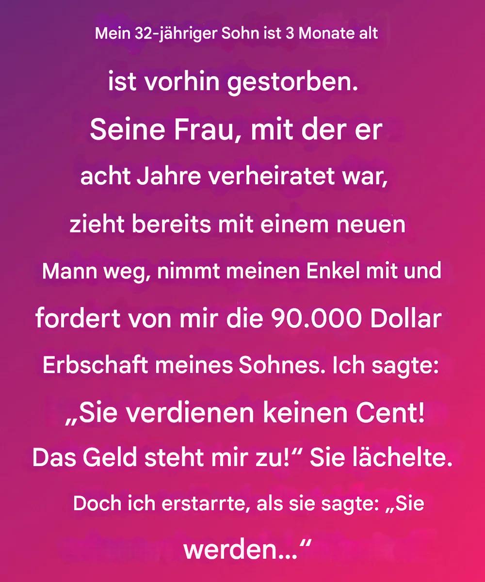Eines Nachmittags besuchte Lily ihn und bat um das Erbe, das Daniel hinterlassen hatte: neunzigtausend Dollar.